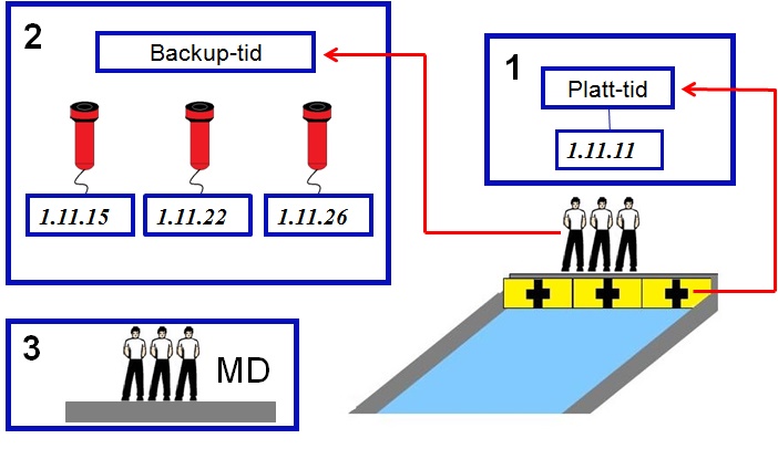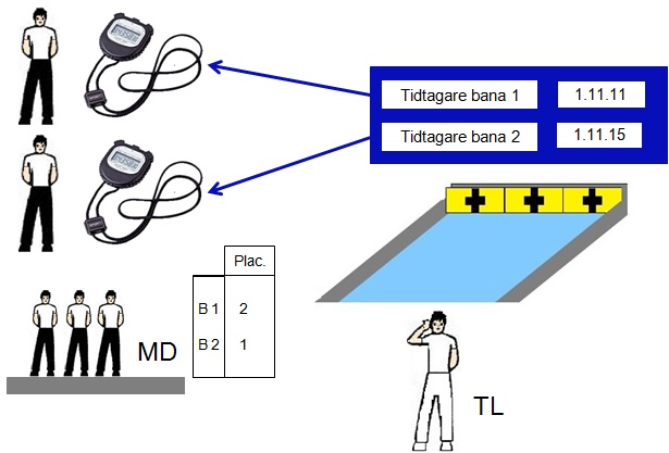 - 413.2.3.3 en simmare, som varken har automatisk Placering eller automatisk tid, erhåller sin relativa placering genom den tid som registrerats av den halvautomatiska utrustningen (backup) eller av tre klockor.